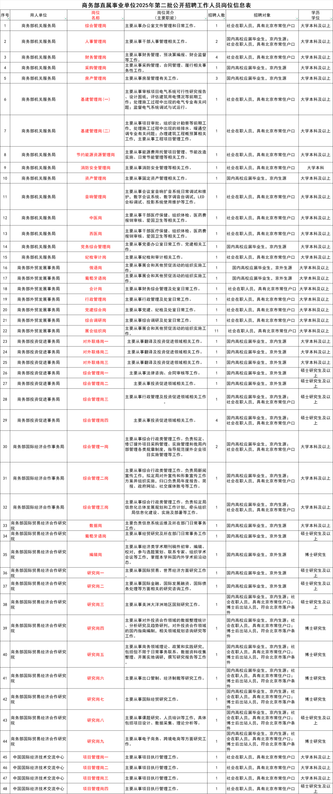 《商务部直属事业单位2025年度第二批公开招聘工作人员岗位信息表》。