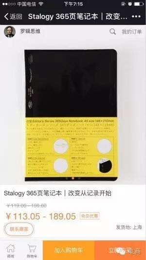 我们来看看罗辑思维这本笔记本,其实只是一个笔记本,用来写字的话,当然不值100多,但注意后面的slogan:改变从记录开始,我的天,这个笔记本是放在“提升自我”心理账户里的,100多还叫钱吗??