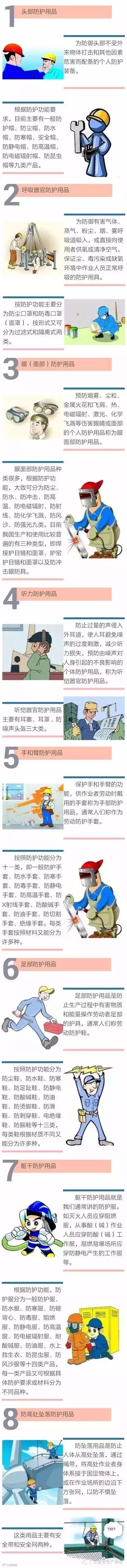 生产过程中存在着各种危险或有害因素,会伤害职工的身体,损害健康,有时甚至致人死亡。长期来,人们汲取了各类事故的教训,在劳动中按规定使用劳动防护品是十分必要的。劳动防护用品种类很多,不同种类的防护用品,可以起到不同的防护作用。