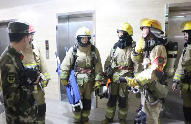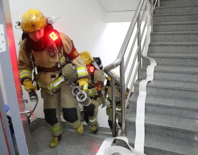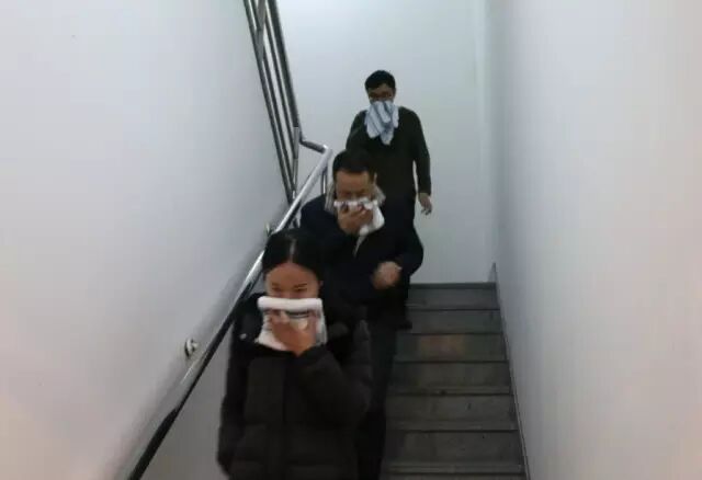 模拟孵化大楼发生消防险情。从职工逃生到扑灭火势。