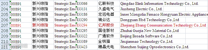 据悉,为进一步丰富指数体系,为投资者提供新的分析工具和投资标的,中证指数有限公司和上海证券交易所将于2017年1月25日正式发布中国战略新兴产业综合指数(简称:新兴综指),中国战略新兴产业成份指数(简称:新兴成指)。全国共281家新三板创新层公司入选此次新兴综指样本股,杭州市上城区电子机械功能区的慧景科技、亿邦股份2家新三板创新层公司入选。
