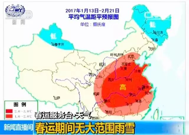 中国气象局预计,今年春运期间(1月13日至2月21日期间),我国除东北北部、内蒙古东北部以及新疆北部气温较常年同期偏低外,其余地区气温接近常年或偏高;东北南部及新疆北部可能出现阶段性强降温和降雪。