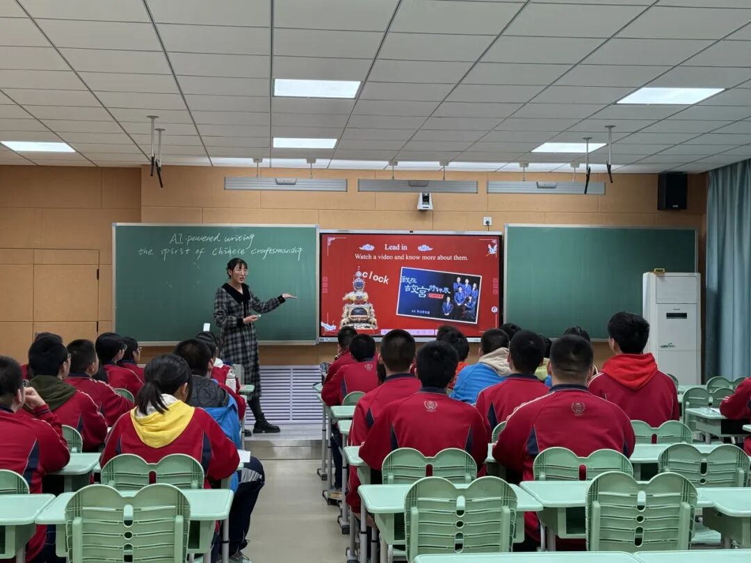 英语教师裴田田老师通过播放故宫文物修复视频和VR云游故宫进行情境创设,引导学生进入“工匠精神”的文化语境;之后通过结构化写作训练,采用“三段式”写作框架(开头-主体-结尾),引导学生逐步构建文章结构;教学中通过引入AI助教为学生建构核心词汇与句型,分类整理“人物介绍”“工作挑战”“工匠精神”及“传承工匠精神”等核心词块及核心句型。