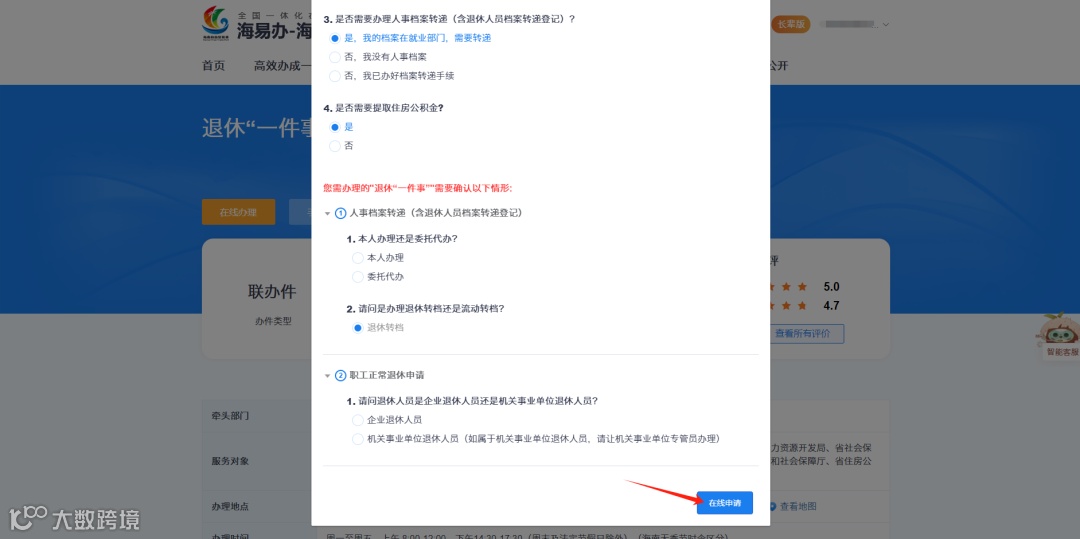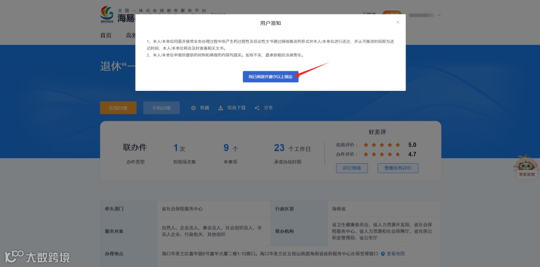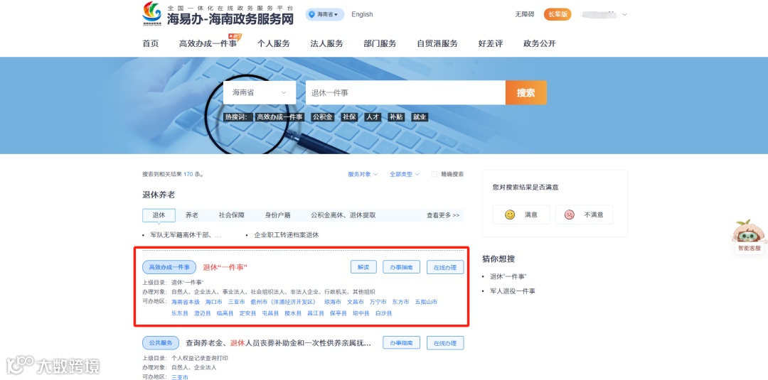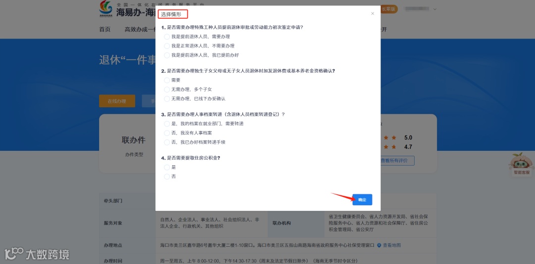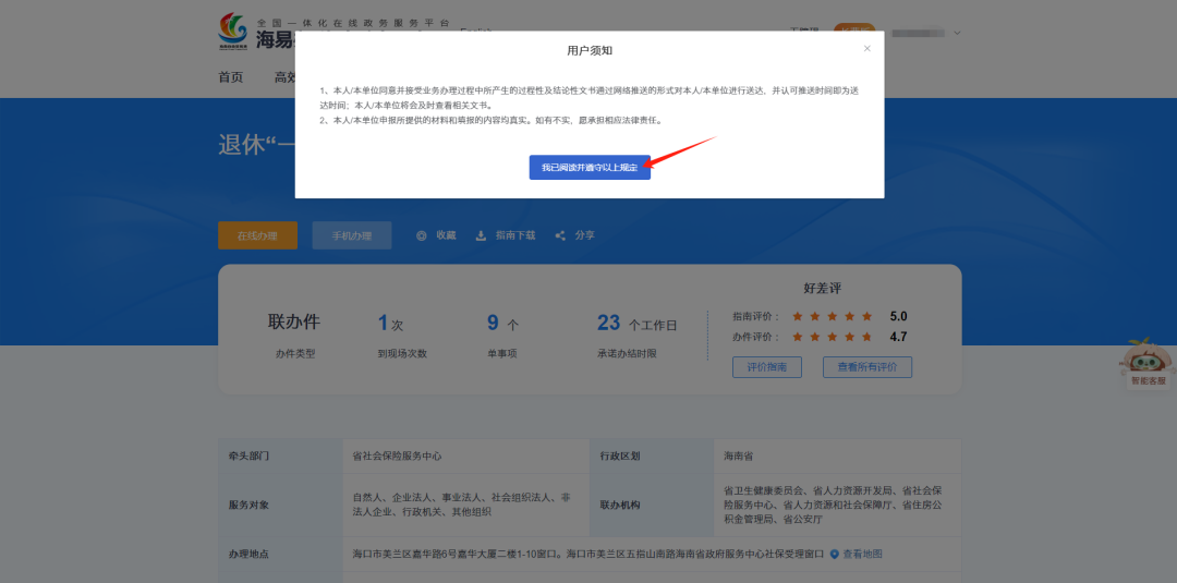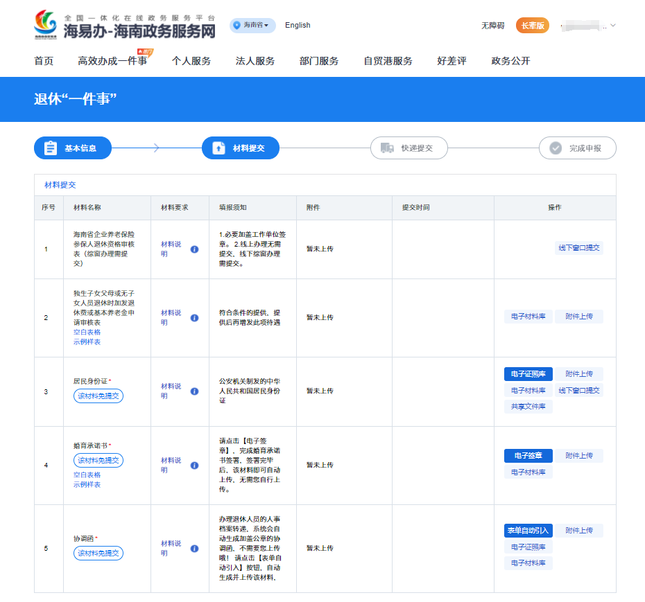 ✎1.建议最好用退休人员本人的海南政务服务网/海易办账号进行登录办理,以便可以读取到更多共享信息、资料。