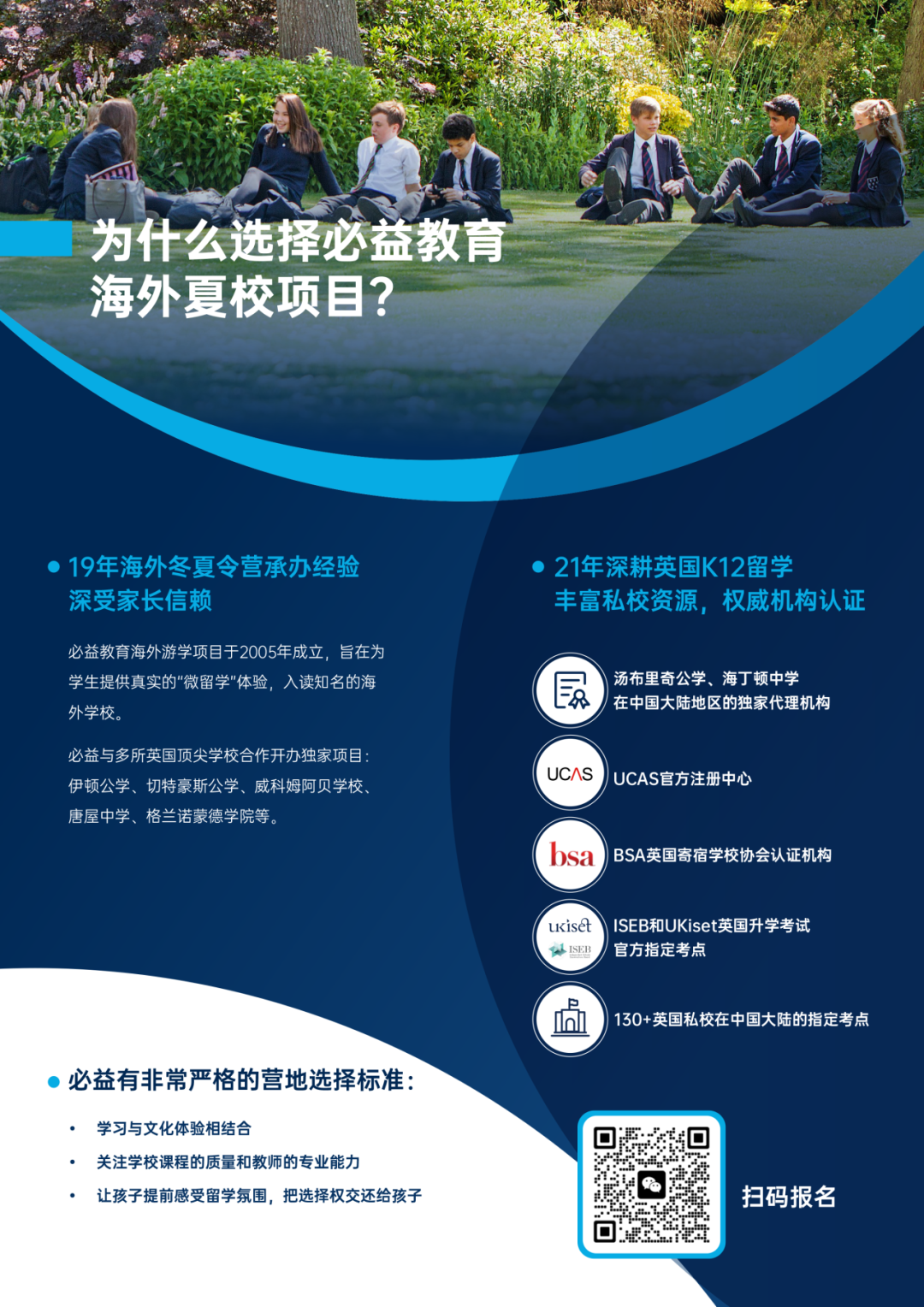 近8年来,必益教育已经帮助20+学子成功录取Sevenoaks School。自2020年起,必益教育便是七橡树中学(Sevenoaks School)13+中国大陆地区唯一指定考点,七橡树中学的入学考试事宜,都需联系必益教育进行。(点击回顾2024年七橡树中学13+入学中国大陆独家考场)