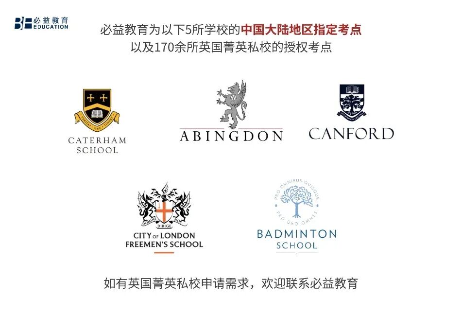 伦敦城市弗里曼中学(City of London Freemen’s School)的中国大陆地区指定考点,以及170余所英国菁英私校的授权考点。