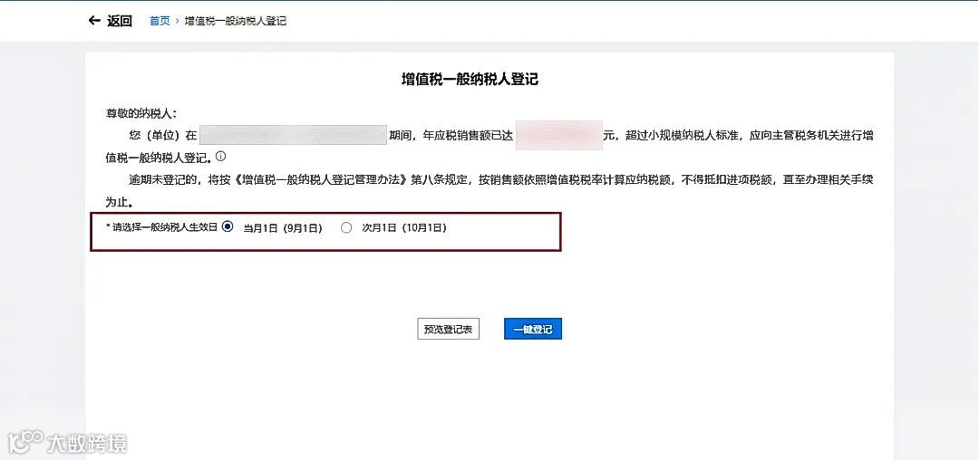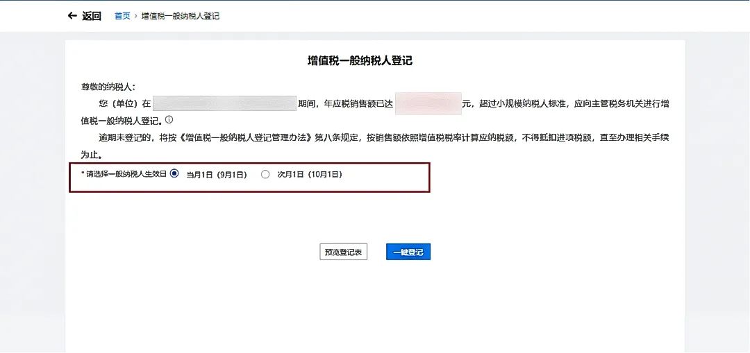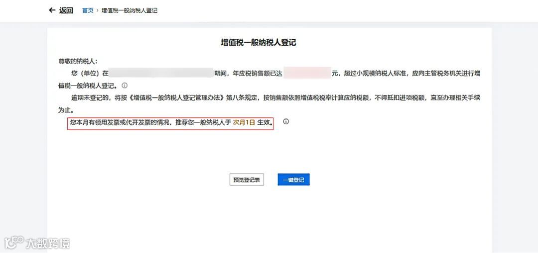 ③系统判断纳税人当月存在代开发票、自开发票或领用发票的情况,系统自动带出一般纳税人生效日为次月1日。