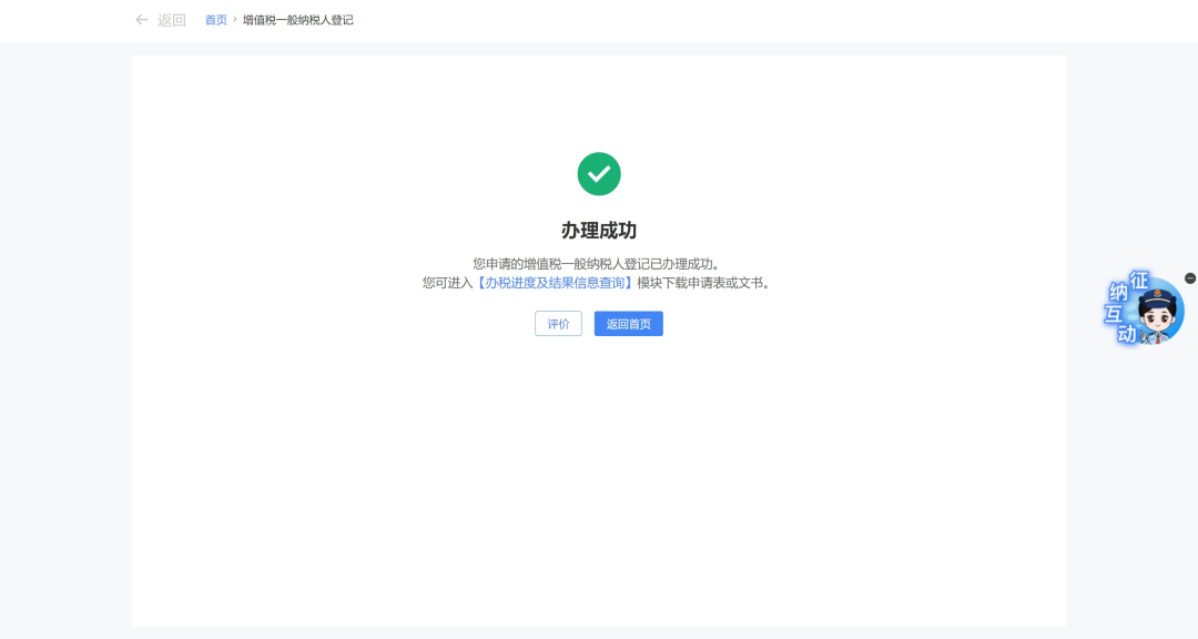 ⑤一键登记后,系统返回办理成功,纳税人可根据提示去办理后续事项。