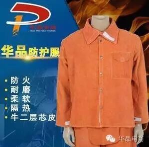 电焊服是焊接工人工作时所穿的一种具有防护性能的服装,具耐磨﹑隔热和防火性能,重点受力部位均采用双层皮及锅钉加固结构,提供高度安全作业环境;配有可调魔术贴的可翻式直立衣领,可阻挡烧焊飞溅物;肩部置有护缝条,加强耐用度。防火阻燃的棉质衣领安全、舒适又吸汗。手袖上部和肩位有内里,方便穿卸。电焊服前胸防护皮条设计可防止烧焊飞溅物溅入衣内,双层皮及锅钉加固结构,防止撕脱。通常电焊工在高温焊渣飞溅、高辐射等条件下作业,如果不正确佩戴防护用品的话,很容易对身体产生伤害。