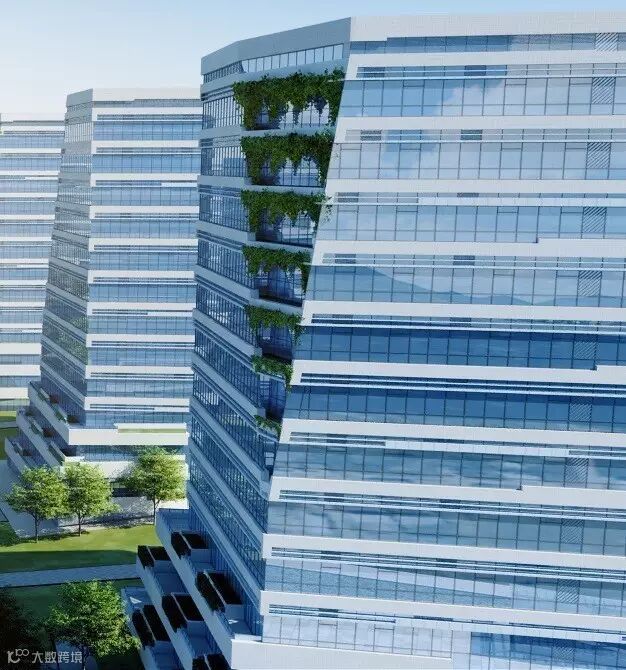 绿谷·杭州以Office Park理念打造,营造更符合智慧办公需求的低密度花园办公,多项绿色科技细节和人性化设计,获绿色建筑二星认证。空中花园、空中农场、层层退台及超高电梯配比、3.9米总部级商务层高、精装挑高大堂等硬件标准,为企业注入自信和创新灵感。