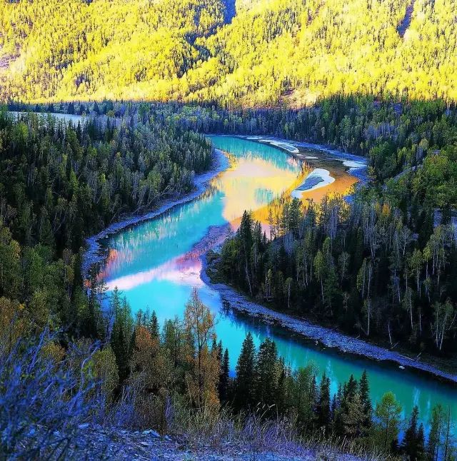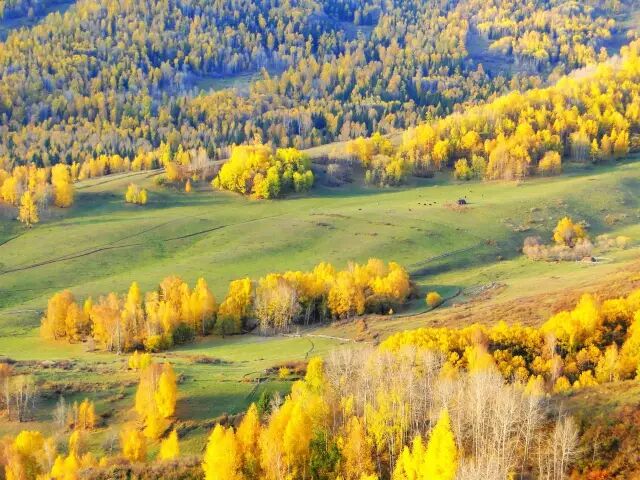 北风卷地白草折,边疆的秋似乎总是来得那样快,那样出其不意。几乎是在一夜之间,原本还沉醉在满满绿意中的喀纳斯,突然就黄了一片,金了一地,变得浓墨重彩起来。