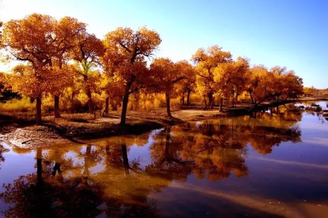 “千年生而不死、千年死而不倒、千年倒而不朽”,金色的胡杨定义了额济纳不俗的美。只一眼,便难以忘怀!