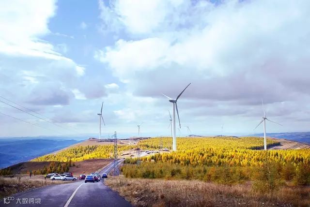 秋季的草原天路没有一望无际的绿野,没有满山盛开的野花,取而代之的是黄绿相间的美景,再加上山间仿佛停滞的牛羊和不停转动的风车,画面丰富到极致。