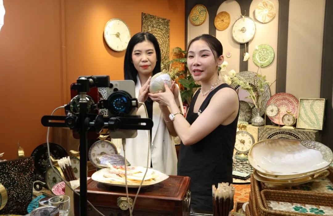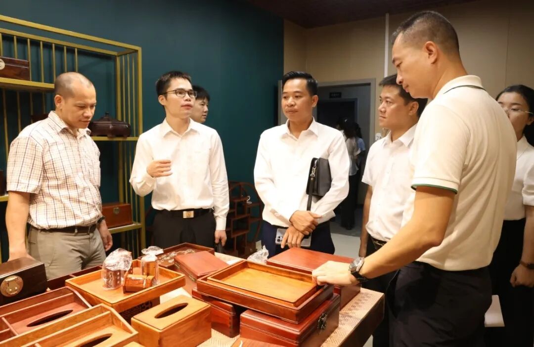 培训结束后,全体营员乘车前往东兴市电商企业及产业园区,对多家涵盖物流、直播基地、跨境供应链等领域的代表性企业进行实地考察。在东兴市风顺速递有限公司(东兴圆通)分拣中心,工作人员向中越营员介绍了现代化自动分拣线的高效运转模式;在陕西届洲出口贸易有限公司、广西龙腾网络科技有限公司和广西凯腾贸易有限公司,营员们了解了红木制品、竹编藤编制品通过电商平台销售的全流程;在东兴紫彤电子商务有限公司的直播基地,中方主播热情推介特色工艺品的场景,让中越青年直观感受到电商直播的魅力。通过近距离观摩,大家不仅看到了人工智能等新技术在产业各环节的深度应用,更真切体会到电商产业在数字化转型浪潮中展现的蓬勃活力。