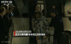 10月17日7时30分,搭载神舟十一号载人飞船的长征二号F 遥十一运载火箭,在酒泉卫星发射中心点火发射,约 575 秒后,神舟十一号载人飞船与火箭成功分离,进入预定轨道,顺利将景海鹏、陈冬2名航天员送入太空,飞行乘组状态良好,发射取得圆满成功。