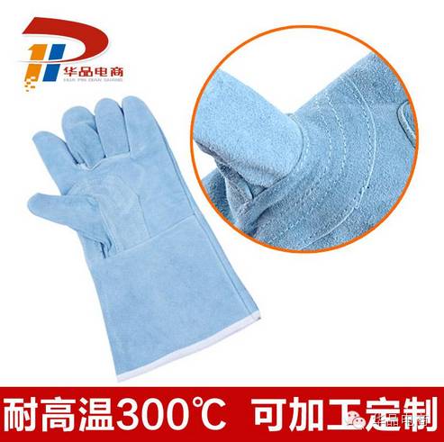 焊工手套是为防御焊接时的高温、熔融金属、火花烧(灼)手的个人防护用品。一般采用牛、猪绒面革制成五指形,三指形和二指形手套。并配有18cm长的帆布或皮革制的袖筒。焊工手套产品的质量应符合LD34.3-92标准的规定。
