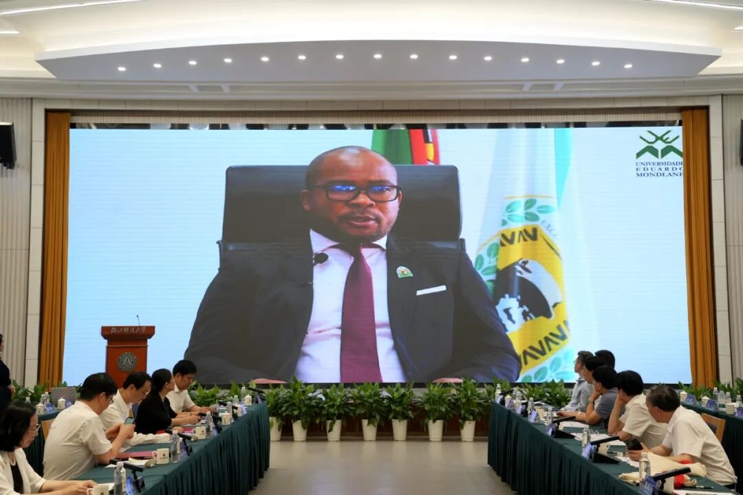 实验室理事会副主任、莫桑比克蒙德拉内大学校长曼努埃尔·吉尔吉赫木·朱尼尔发表视频致辞。他向中国和莫桑比克相关部门的支持表示感谢,并回顾了与浙师大在技术和文化交流上的合作历程。他强调,此次联合实验室的获批不仅是中莫关系的战略里程碑,更是推动非洲智慧农业产业发展领域的先驱。蒙德拉内大学将全力以赴,与浙师大共同为联合实验室的研究提供支持,努力将其提升为具有国际影响力的智慧农业技术领域国际合作平台。