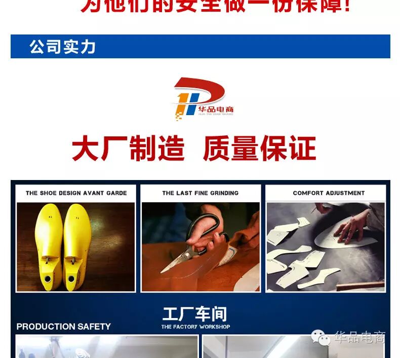 目前主要经营有劳保鞋、劳保手套、电焊防护服(套)等劳保防护用品,利用先进的互联网技术,直接把优质的商品从生产车间直接送到终端使用用户手中,大大降低流通成本,利好于终端消费者。创造一流的交易环境,华品电商,做中华品质,欢迎咨询合作!