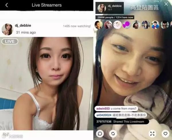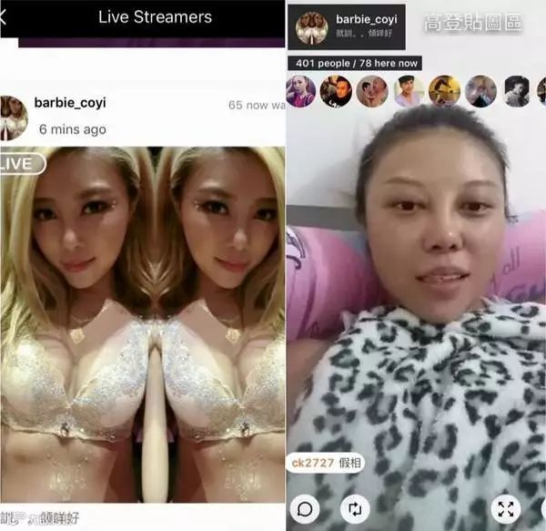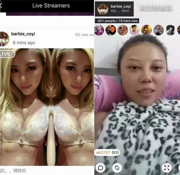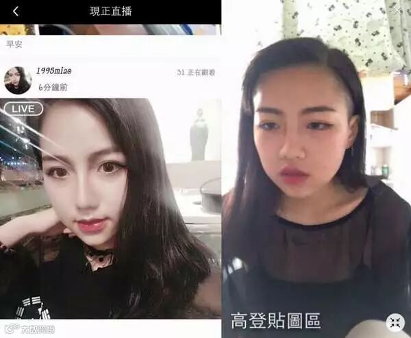 下面是网友贴出的某视频直播APP中一些主播的照片,显示了自拍照片和即时视频有多大区别!