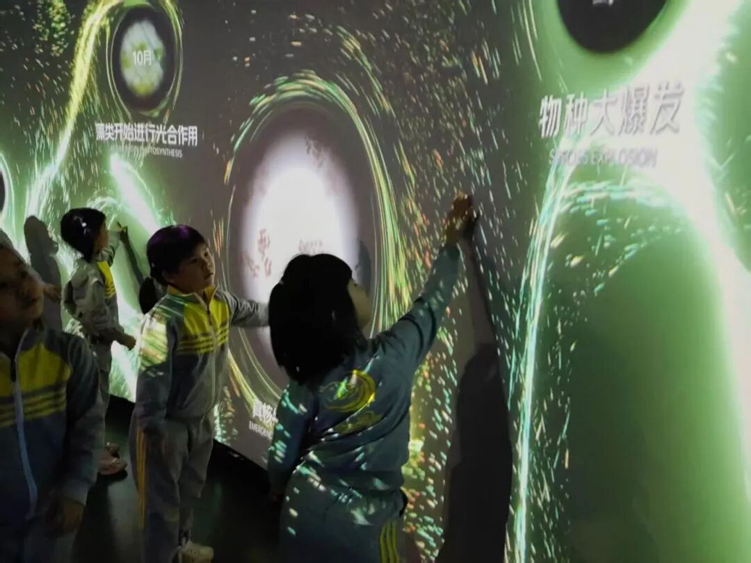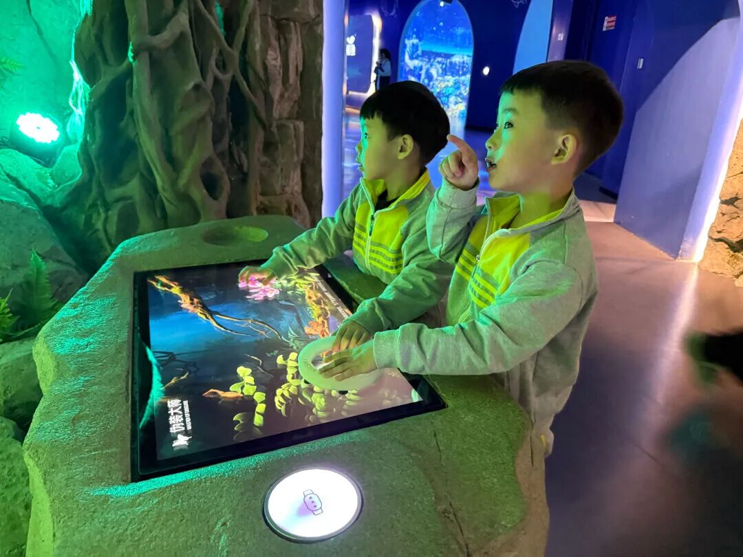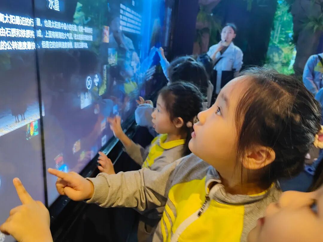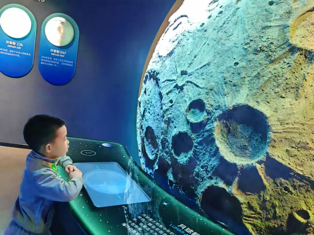 在这里,绝美的星河在眼前缓缓展开,恒星陨石随手可触,幼儿沿着漫长的时间线探索宇宙的奥秘,还可以将自己置身于海洋世界中,与各种海洋生物亲密互动。他们感受登录月球的快乐,探秘行星的奥秘。