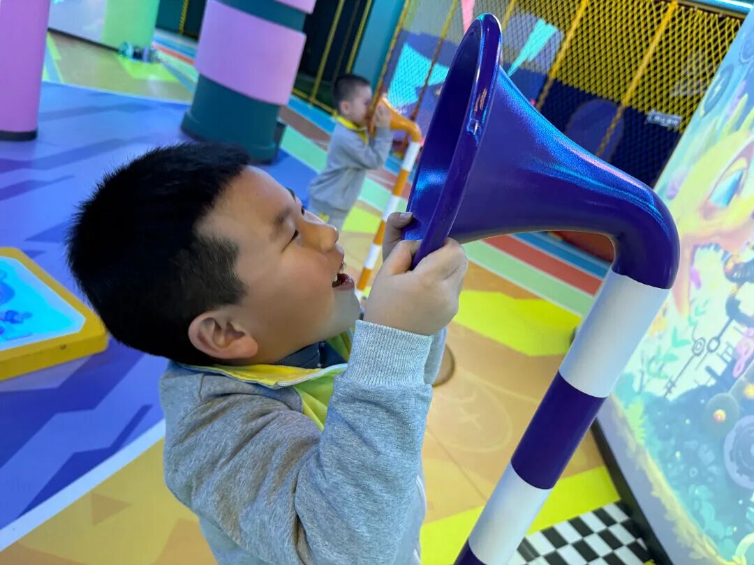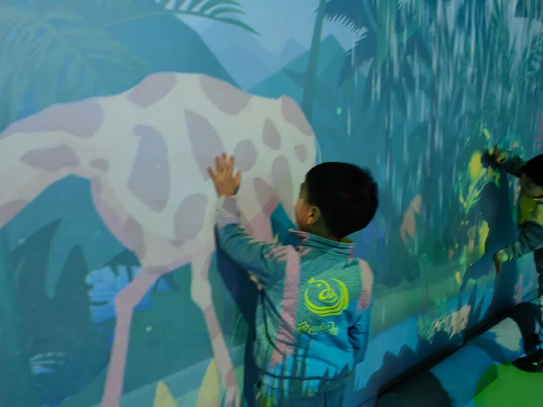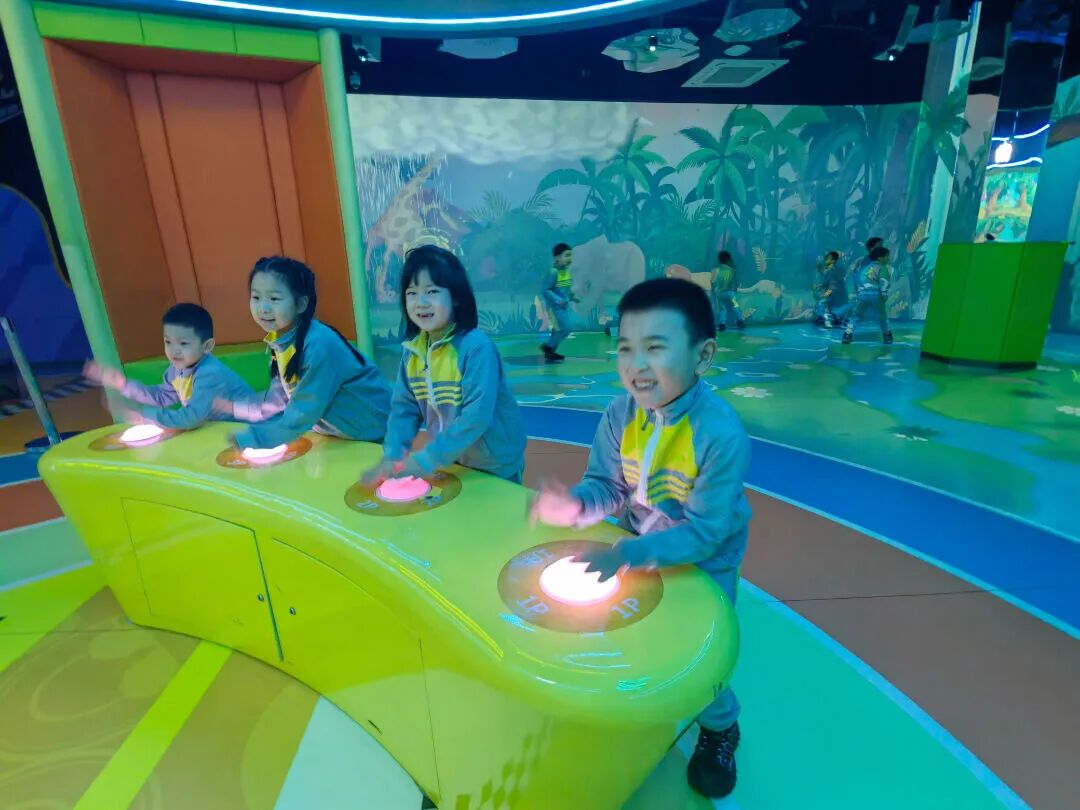 这里有酷炫的运动场景,有光影互动的新奇游戏,孩子们可以置身于奇幻的热带雨林,将喜欢的海洋生物涂上颜色,用神奇的道具变换内容,创造出独一无二的海洋小鱼……孩子们在游戏中启发智慧,在运动场中释放活力。