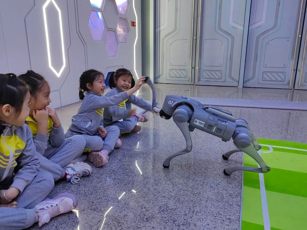 这是一个充满创意与科技的空间,在这里,孩子们跟随专业的研学导师亲身感受和机器狗的互动,亲身感受人工智能的魅力,开阔幼儿的视野,培养幼儿的探索精神和科学素养,帮助幼儿从小树立科技强国的梦想。