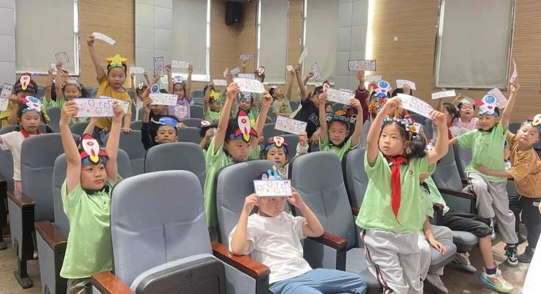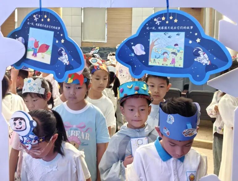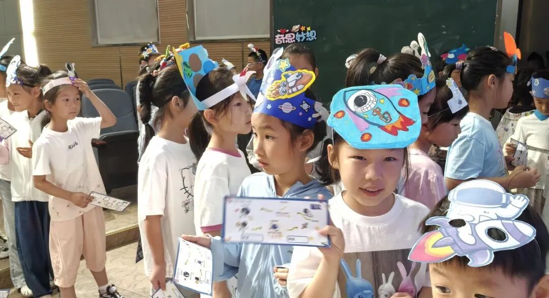 浩瀚宇宙,藏着无限奥秘;童真稚子,怀着探索热情。2025年6月23日,朝晖小学一年级的小朋友们头戴形态各异的太空主题头饰,化身小小“星际探险家”,在学校报告厅开启了一场别开生面的无纸化测评之旅。