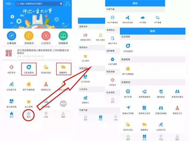 新功能之外,那些你已经很熟悉的预约挂号、新生儿重名查询、交通罚款缴纳、出入境手续办理等功能依然还在哦……就在你触手可及的地方!