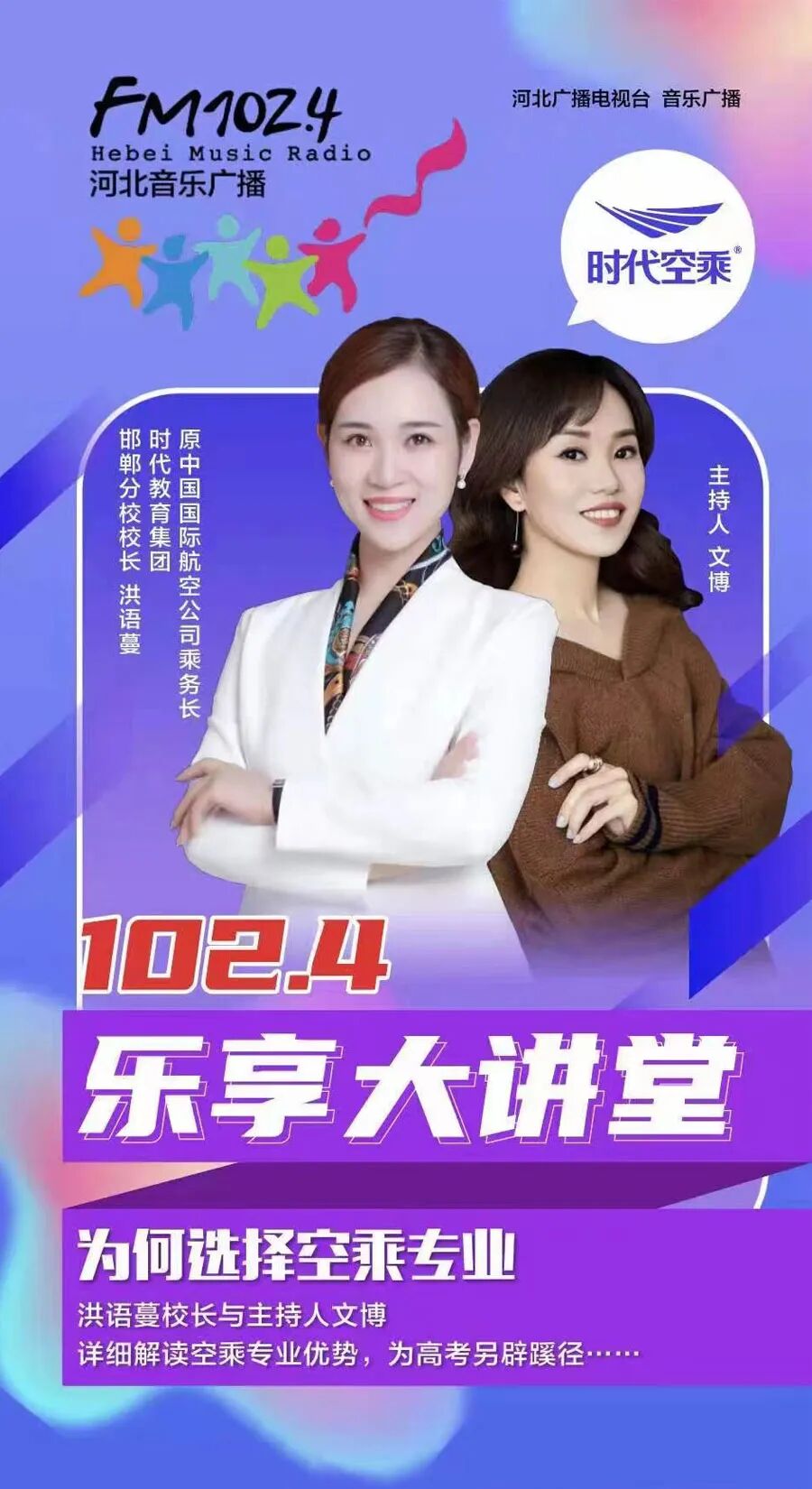 建校初期,在很多高速公路上都能看到非常醒目的时代空乘广告牌;后来,在机场候机楼大厅电子屏上也能看到非常亮眼的时代空乘宣传视频;乘坐地铁时还能看到非常引人注目的时代空乘的展牌。
