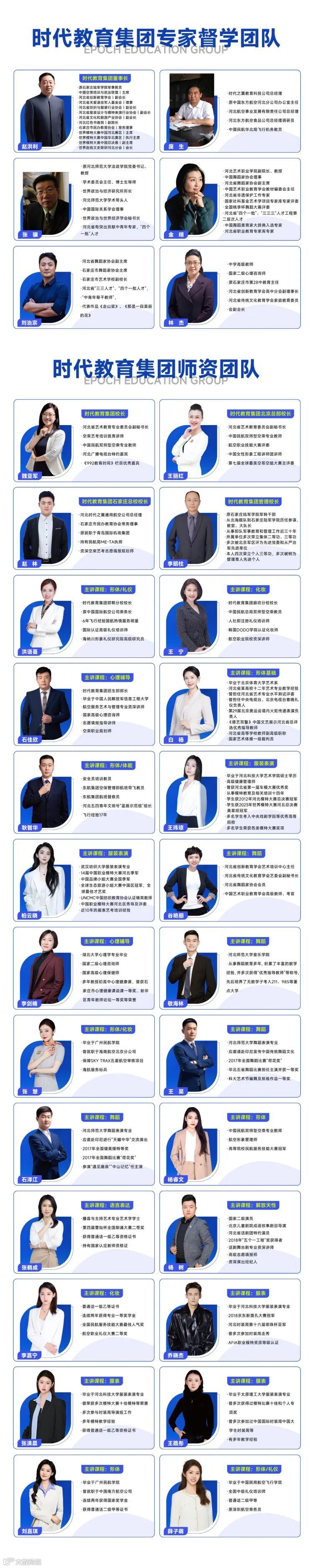 时代教育集团旗下拥有时代文化艺术专修学校、时代之翼通用航空有限公司、时代霓裳文化传媒(河北)有限公司等多元化单位。时代教育始于2003年[教民113010470000370],至今二十余年,创办首家民航院校河北生源基地,打造了享誉全国的时代空乘品牌,受到中央、省、市多家主流媒体报道,时代教育集团被誉为“蓝天上的黄埔军校”。