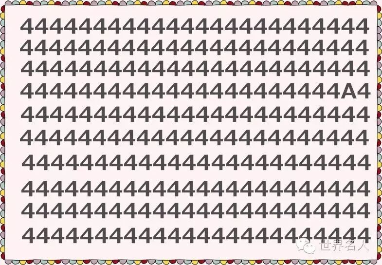 第六关:在这么多4里面找出A吧,如果找到了就好好休息一下吧。真正有难度的就要来了~~~