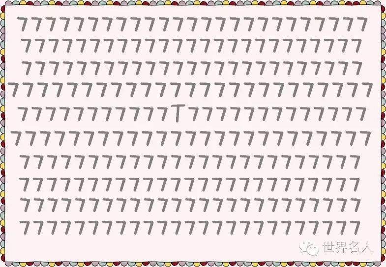 下面每一张图都有一个与其他数字不一样的数字或字母,找到技巧,你就能看得出来。那么你能找出几个,闯到第几关呢?让我们拭目以待吧!