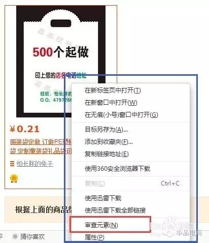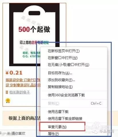 右击“鼠标”右键,弹出一个“选择框”,然后选择“审查元素”,如下图红框。