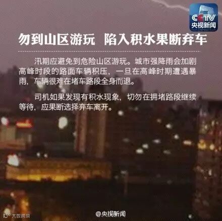 近期暴雨多发,极易在山区造成山洪泥石流、在城区形成内涝积水等洪涝灾害,同时降雨往往伴随着大风、雷电,造成高空坠物、树倒枝折、雷击等次生灾害。为确保安全度汛,可得牢记以下这几条: