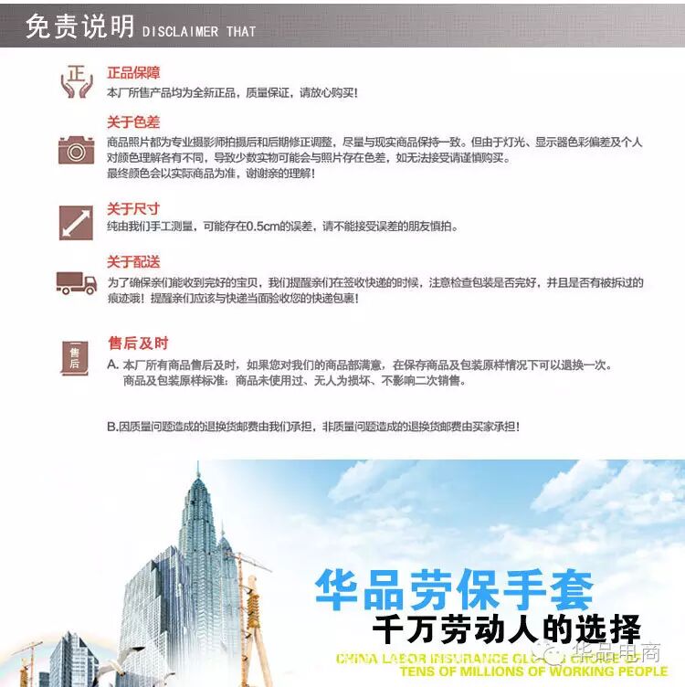 目前主要经营有劳保鞋、劳保手套、电焊防护服(套)等劳保防护用品,利用先进的互联网技术,直接把优质的商品从生产车间直接送到终端使用用户手中,大大降低流通成本,利好于终端消费者。创造一流的交易环境,华品电商,做中华品质,欢迎咨询合作!