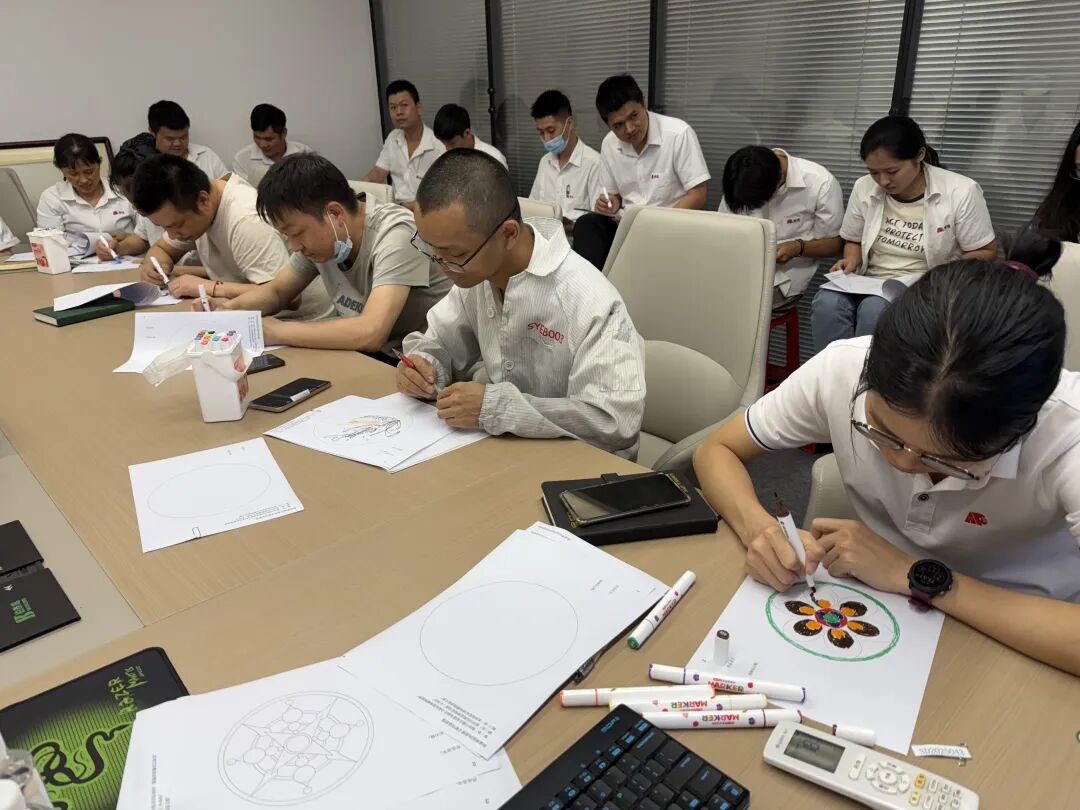 讲师凭借深厚理论与丰富实务经验,引领职工探索曼陀罗世界。他从曼陀罗的“前世今生”展开讲述,揭示其“结构严整、方圆结合”所蕴含的心灵整合力量。导师运营情绪日记本、压力灭火器等心理工具、妙招,实行破冰增进交流,同时帮助职工快速将曼陀罗相关理论转化为实际行动,融入日常生活。一位职工分享道:“我的曼陀罗像乌云镶着金边,因为我终于明白,压力中永远藏着转机。”