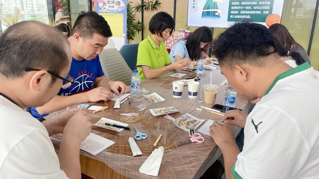 为丰富职工工余文化生活,7月23日下午,在狮山镇总工会的指导下,狮山镇红沙职工服务中心联合南海平谦国际智慧产业园在南海平谦国际智慧产业园-共享中心开展了一场“隐藏书单·掐丝珐琅手作体验活动”,吸引了25名职工参与。本次活动巧妙融合阅读分享与非遗手作体验,让参与者在书香与匠心中感受传统文化的魅力。