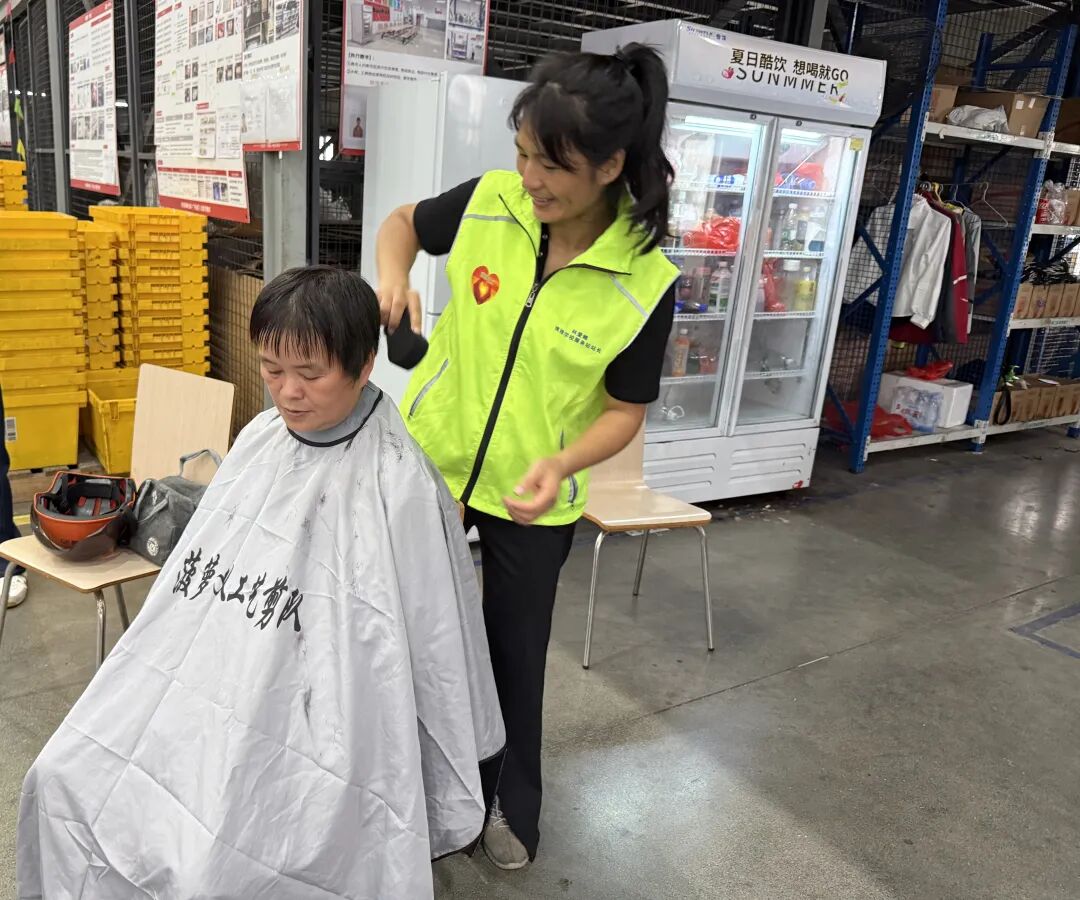 活动中,志愿者们为物流园新业态职工和环卫工人送去100箱清凉饮品、70对防晒冰袖。专业人员现场讲解防暑降温知识,提升他们高温下的自我防护能力;有理发技术的菠萝义工还为工人们义剪,带来缕缕清凉。志愿者们跟随园区负责人,一边派送清凉礼包,一边参观工作场所、了解工作情况。企业志愿服务分队精心制作的“职工寄语卡”,承载着企业的感谢与敬意,成为传递企业文化、连接职工情感的温馨纽带。