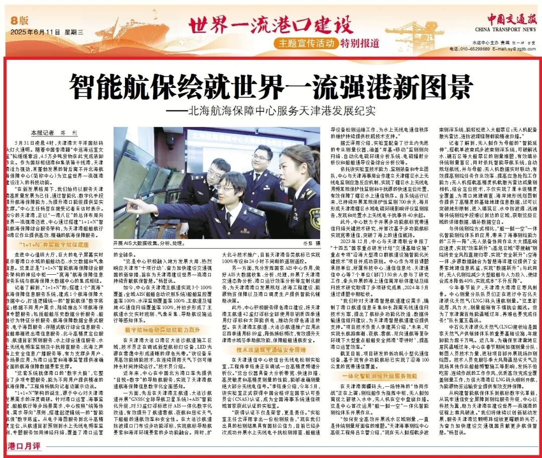 从构建智能航保体系到航标数字化革新,从筑牢通信安全屏障到测绘服务升级,中心以科技为翼,助力天津港在建设世界一流强港的征程上乘风破浪。“我们将继续以创新驱动发展,服务天津港这颗明珠绽放更耀眼的光芒,为奋力加快建设交通强国贡献更多航保智慧。”杨哲说。