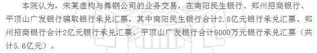 近日,中国裁判文书网披露的一份二审刑事判决书,揭开了一起虚构业务交易,骗取银行承兑汇票的大案,南阳民生银行、郑州招商银行、平顶山广发银行三家银行总共被骗取5.6亿元。