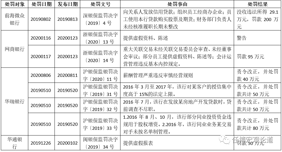 (七)监管处罚:华瑞银行4起、网商银行2起、微众银行1起、华通银行1起