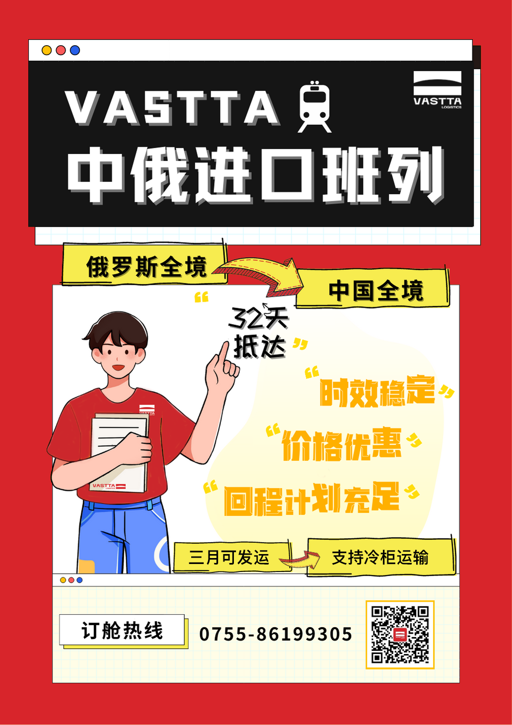 随着中欧进口班列的稳定发展,深圳前海铧时达跨境物流有限公司的中俄进口班列计划也将提上日程,我司于3月有8至10列回程计划,俄罗斯全境至中国全境,线路辐射范围广,且支持冷柜运输,计划紧张,有需要敬请联系。