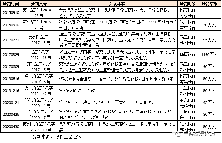 2、处罚事由比较单一,主要有贷款或委托贷款挪作结构性存款质押开票、结构性存款调入其他负债科目、结构性存款收益前置虚增存款等。