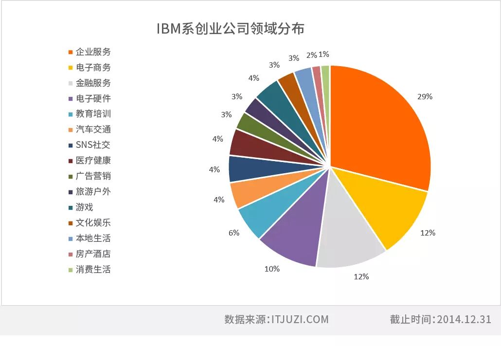 截止到2014年12月31日,IT桔子数据库共收录创始人或创始团队成员来自IBM的创业公司71家, 其中2014年创办的公司10家。