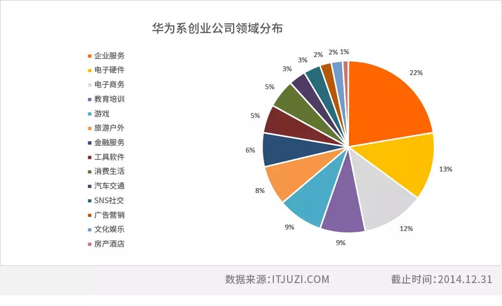 截止到2014年12月 31日,IT桔子数据库共收录创始人或创始团队成员来自华为的创业公司94家, 其中2014年创办的公司18家。