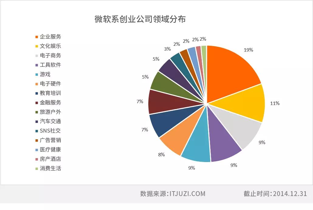 截止到2014年12月 31日,IT桔子数据库共收录创始人或创始团队成员来自微软的创业公司129家, 其中2014年创办的公司23家。