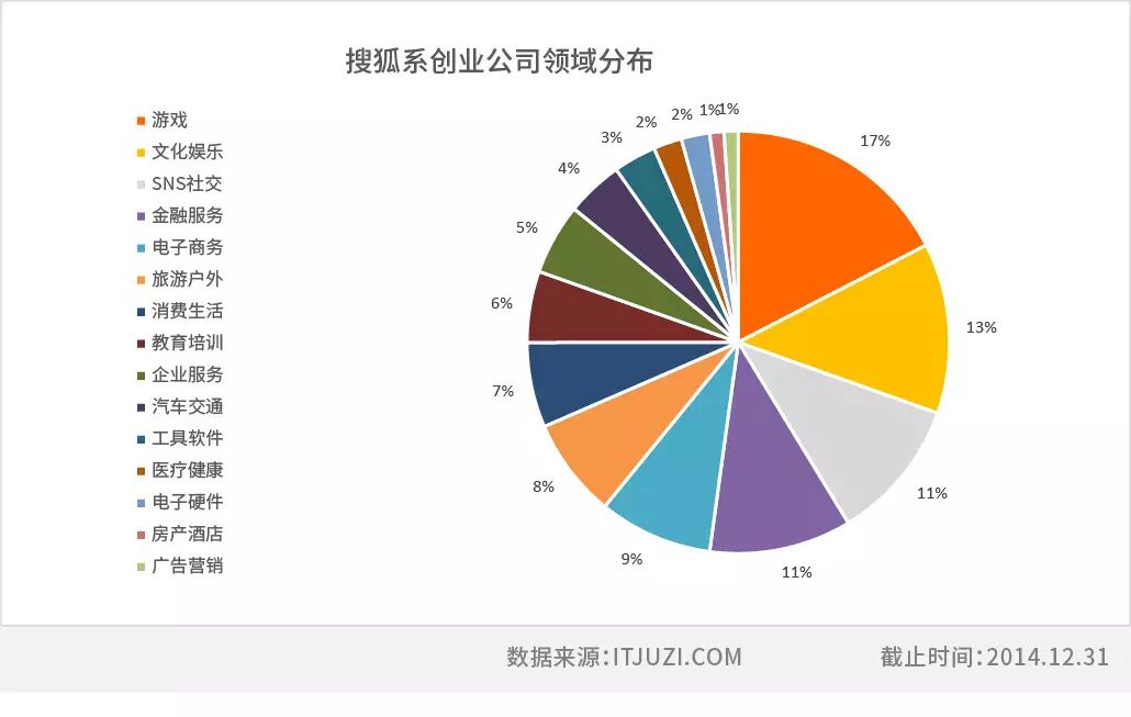 截止到2014年12月 31日,IT桔子数据库共收录创始人或创始团队成员来自搜狐的创业公司94家, 其中2014年创办的公司10家。