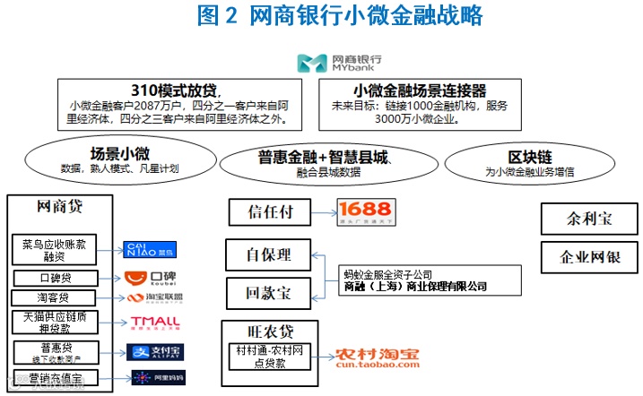 上面所述三个战略是网商银行小微金融业务的核心发动机,最终目的是获得更多的小微企业数据,加速小微金融和产业互联网融合,加速小微金融下沉到三四线市场。