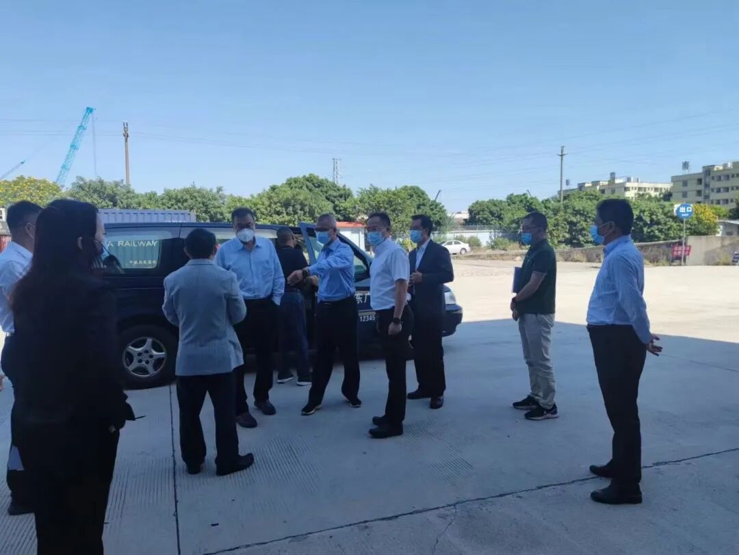 2022年10月11日,广东省商务厅副厅长赵青、陆空口岸处处长陈沛棋、陆空口岸处三级调研员曹学民一行到东莞市调研中欧班列工作,并在常平铁路口岸货场详细了解“东莞常平号”中欧班列运营情况。