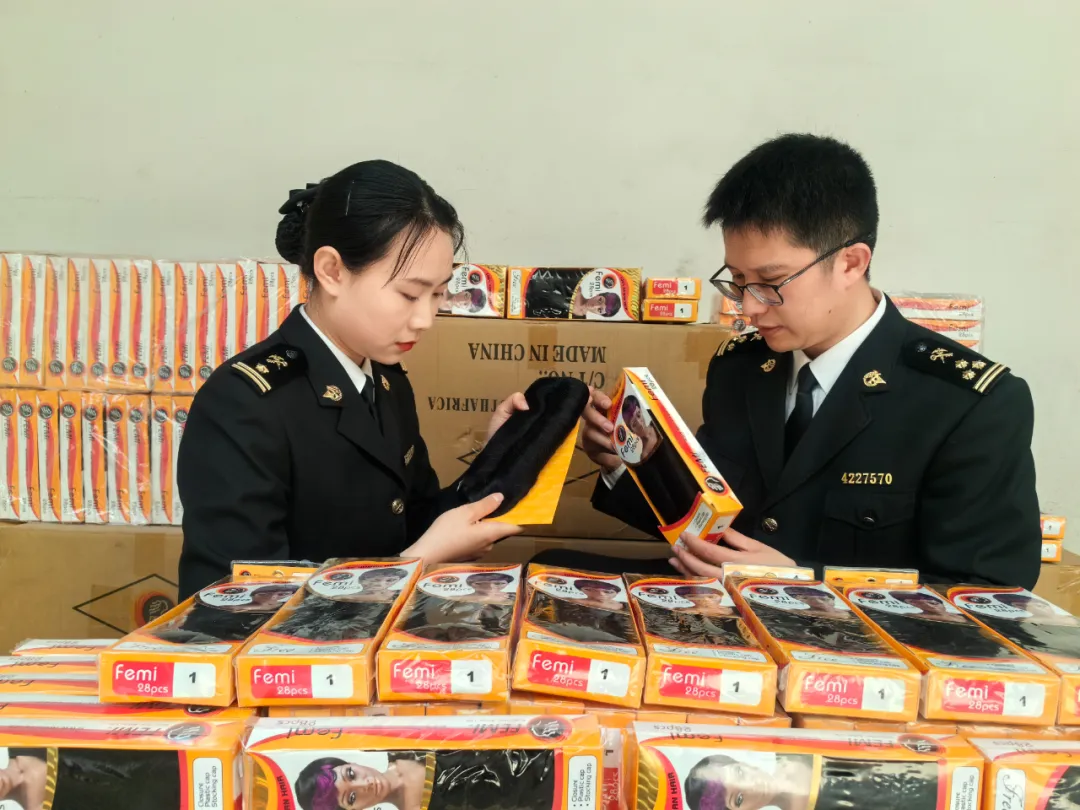 2023年8月,青岛海关所属黄岛海关在对一批出口货物查验时发现侵权嫌疑假发4.14万件,使用了“FEMI”标识,价值人民币358.9万元。经权利人确认,上述假发为侵权货物。海关迅速启动“行刑衔接”机制,目前,公安机关已刑事立案,案件正在侦办中。